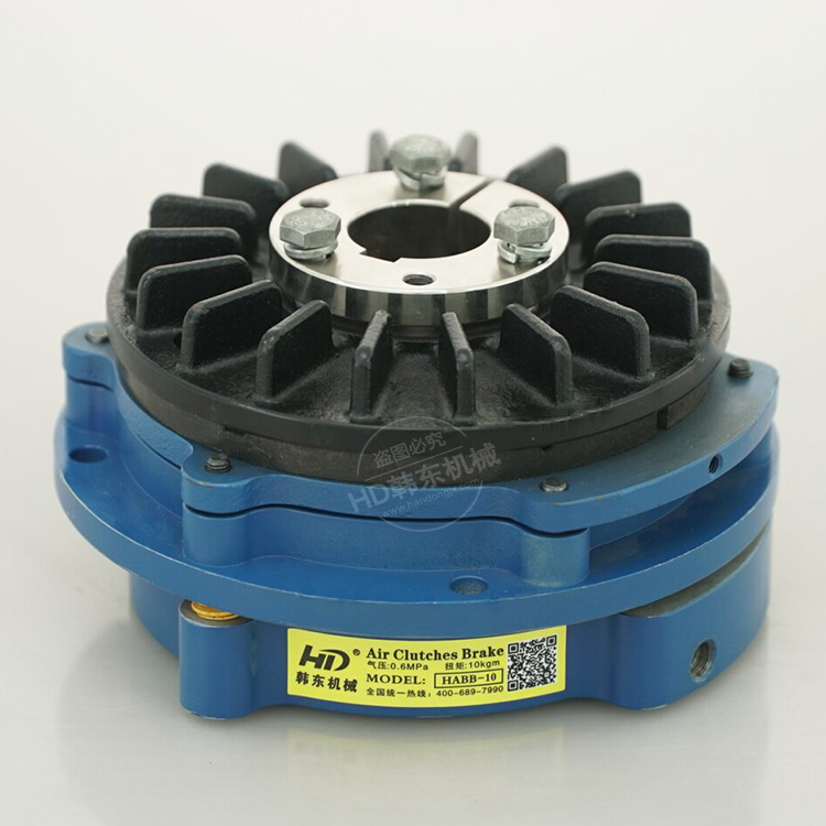 HABB型常閉式氣動(dòng)制動(dòng)器又稱安全制動(dòng)器,在停止供氣時(shí)被制動(dòng)彈簧停止,供氣時(shí)解放。適合于防止安全事故,及緊急制動(dòng)。HABB型制動(dòng)器靠制動(dòng)彈簧來控制,靠空氣壓來放開。如從流量控制閥供給空氣,氣缸會(huì)發(fā)生移動(dòng),盤頭螺絲和活塞架一起連動(dòng),壓縮制動(dòng)彈簧,摩擦板和附軸襯套圓盤分離,解除制動(dòng)。如排除空氣,制動(dòng)彈簧擠壓活塞架,摩擦板接觸到附軸襯套圓盤。