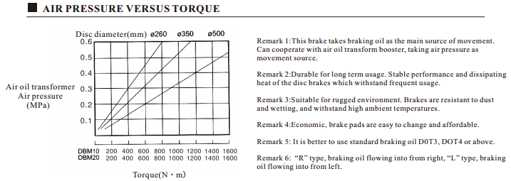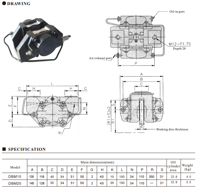 DBM10、DBM20 model hydraulic caliper disc brake technical data: