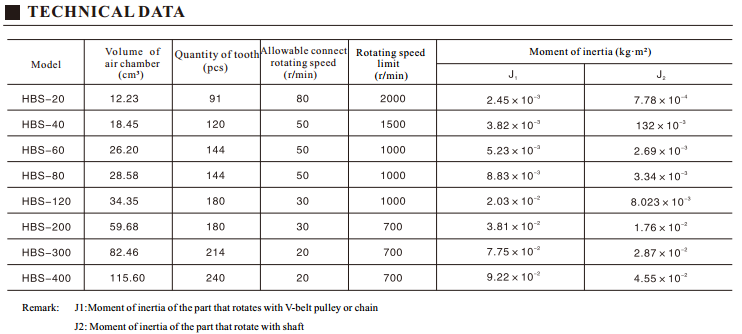HBS model Pneumatic tooth clutch Characaters: